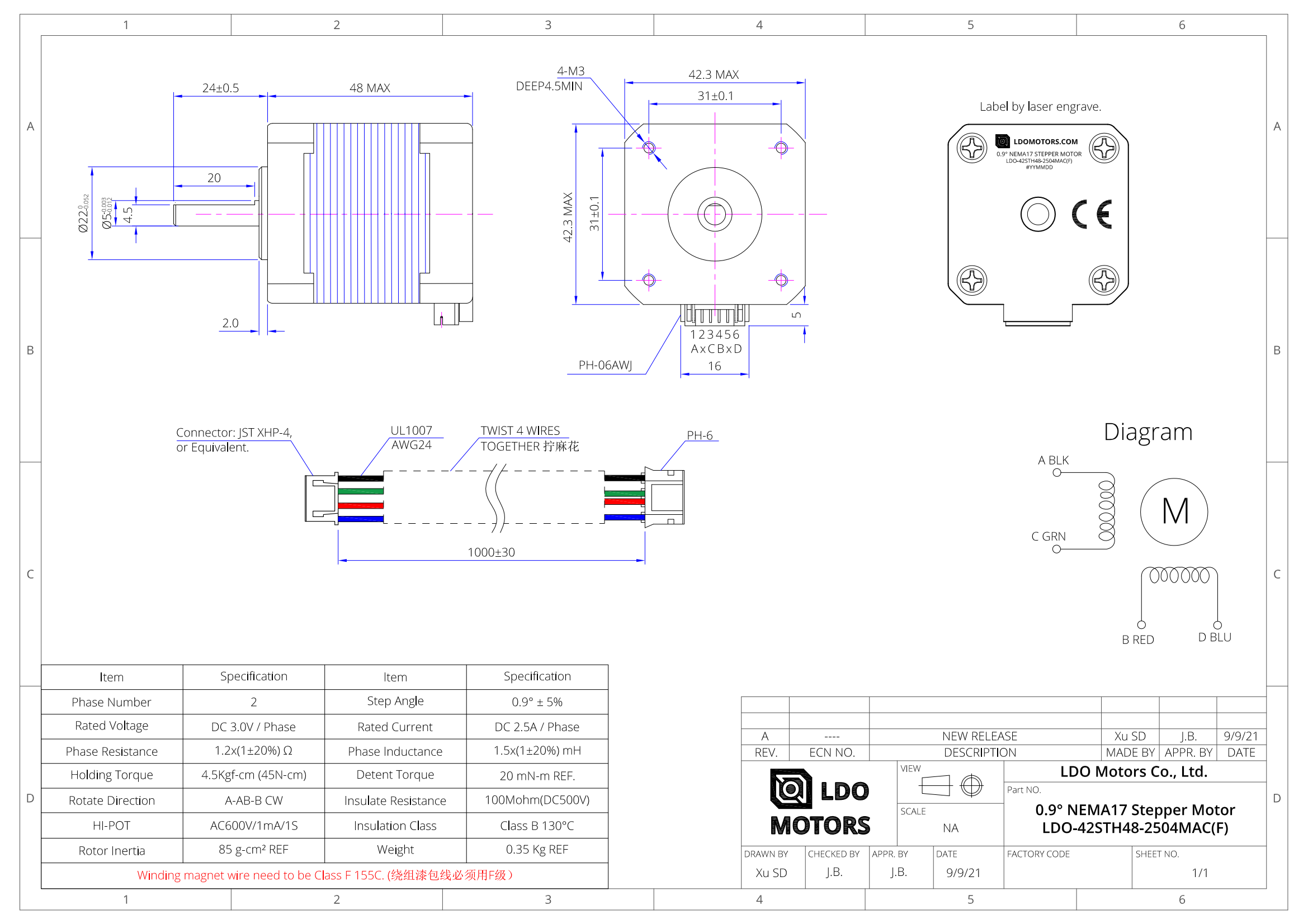 - Step Angle: 0.9° (±5%)