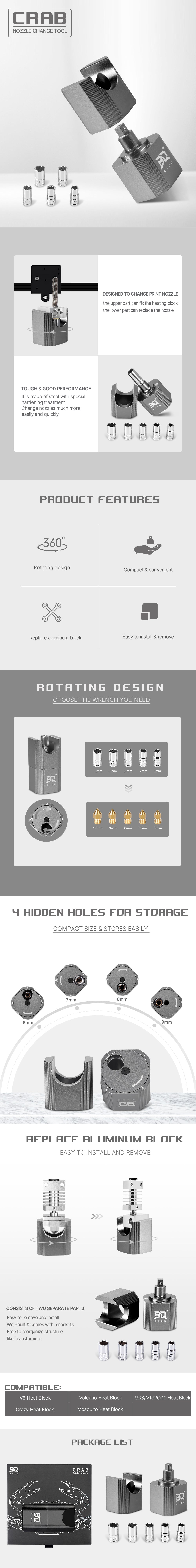 The BIQU CRAB Nozzle Change Tool is a specialized 6-10mm nozzle wrench designed for fast and safe nozzle replacement on popular 3D printer hotends. Its ergonomic design and precise fit make it much easier and safer to loosen or tighten nozzles without damaging the heater block or using improper tools.