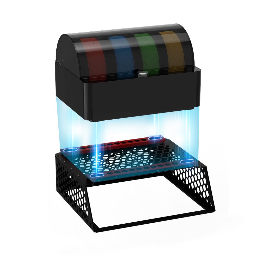 Well made, excellently packed, sturdy, and I’m looking soooo forward to the “printable” pieces for plate storage and other “stuff”. Just awesome to free up desk space, get rid of a “stacked” riser that just was painful to change out filament. Designer should be commended. Just an awesome addition to my print area.
