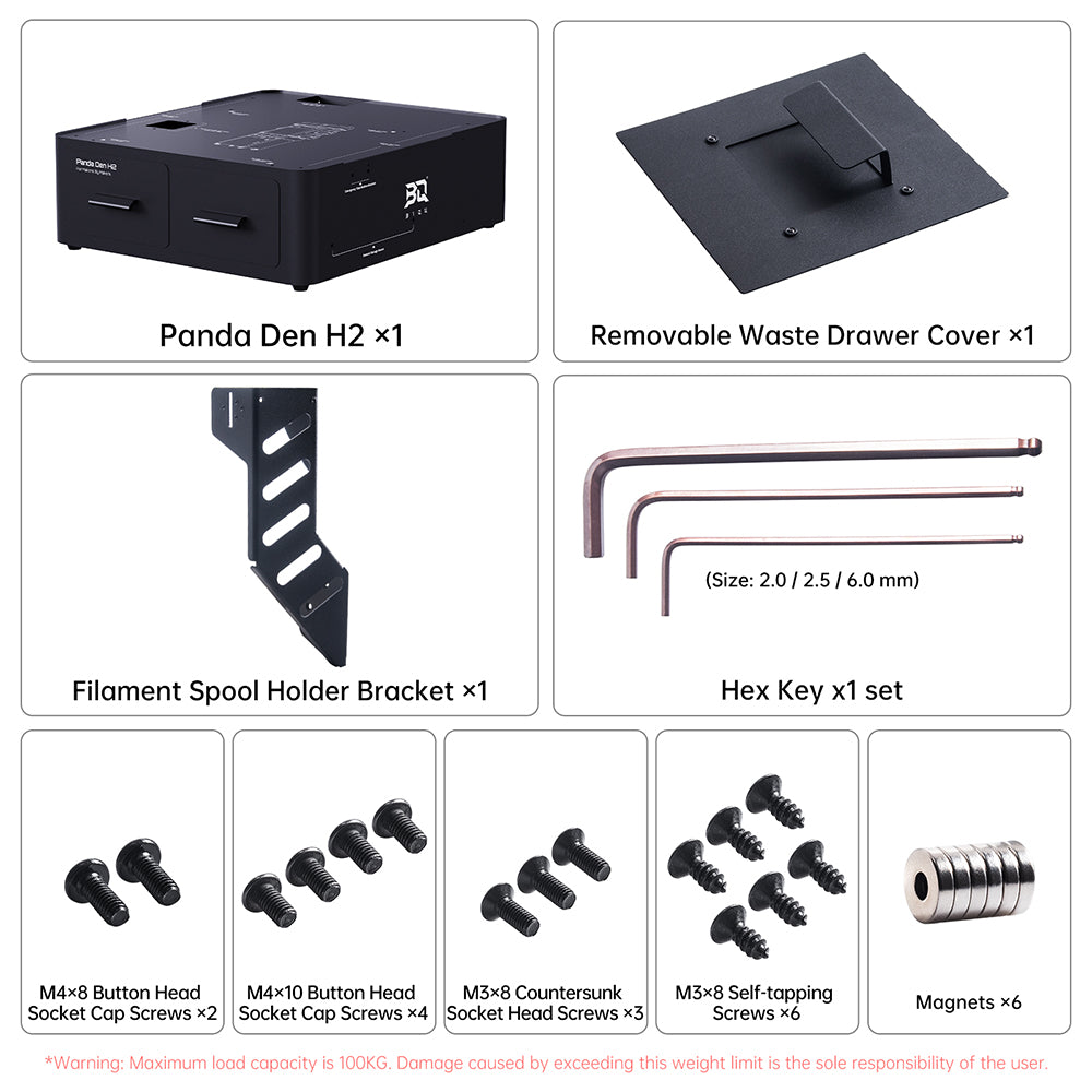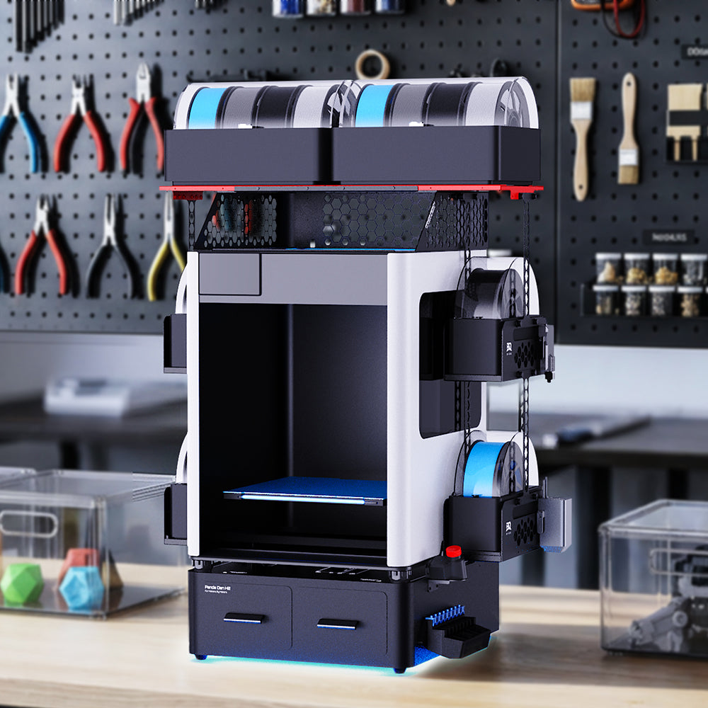 - Panda Station – Dual-layer pull-out drawers: Massive organized storage for filaments, tools, and accessories. Door-activated white light kit + optional RGB ambient lighting with Web UI control (static, breathing, color cycle, status indicators).